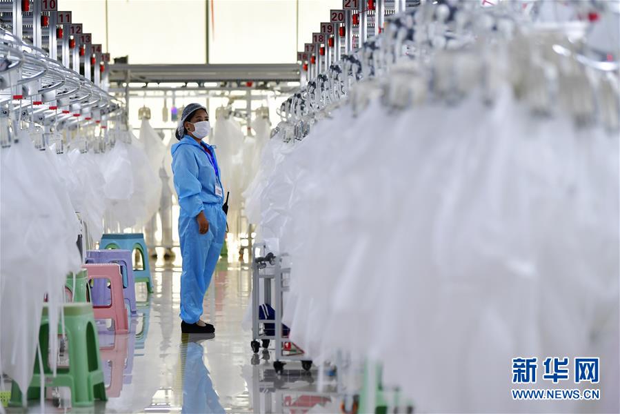 8月9日,甘肅拓奇扶貧車間的員工在服裝加工生產(chǎn)線上作業(yè)。甘肅拓奇扶貧車間位于甘肅省臨夏回族自治州積石山縣,是依托東西部扶貧協(xié)作平臺引進(jìn)的服裝加工企業(yè)。扶貧車間建成投產(chǎn)以來帶動就業(yè)近300人,其中吸納建檔立卡貧困戶就業(yè)110人,實現(xiàn)了貧困群眾就地就近就業(yè)增收的目的,為助推當(dāng)?shù)孛撠毠约翱h域經(jīng)濟(jì)發(fā)展發(fā)揮了重要作用。新華社記者陳斌攝。