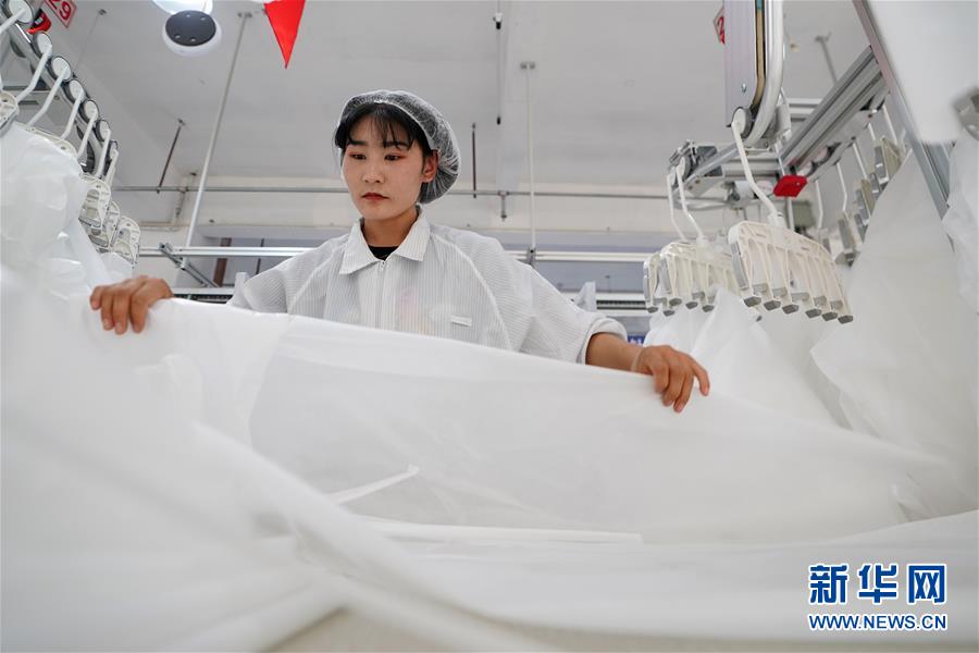 8月9日,甘肅拓奇扶貧車間的員工在服裝加工生產(chǎn)線上作業(yè)。甘肅拓奇扶貧車間位于甘肅省臨夏回族自治州積石山縣,是依托東西部扶貧協(xié)作平臺引進的服裝加工企業(yè)。扶貧車間建成投產(chǎn)以來帶動就業(yè)近300人,其中吸納建檔立卡貧困戶就業(yè)110人,實現(xiàn)了貧困群眾就地就近就業(yè)增收的目的,為助推當?shù)孛撠毠约翱h域經(jīng)濟發(fā)展發(fā)揮了重要作用。新華社記者邢廣利攝。