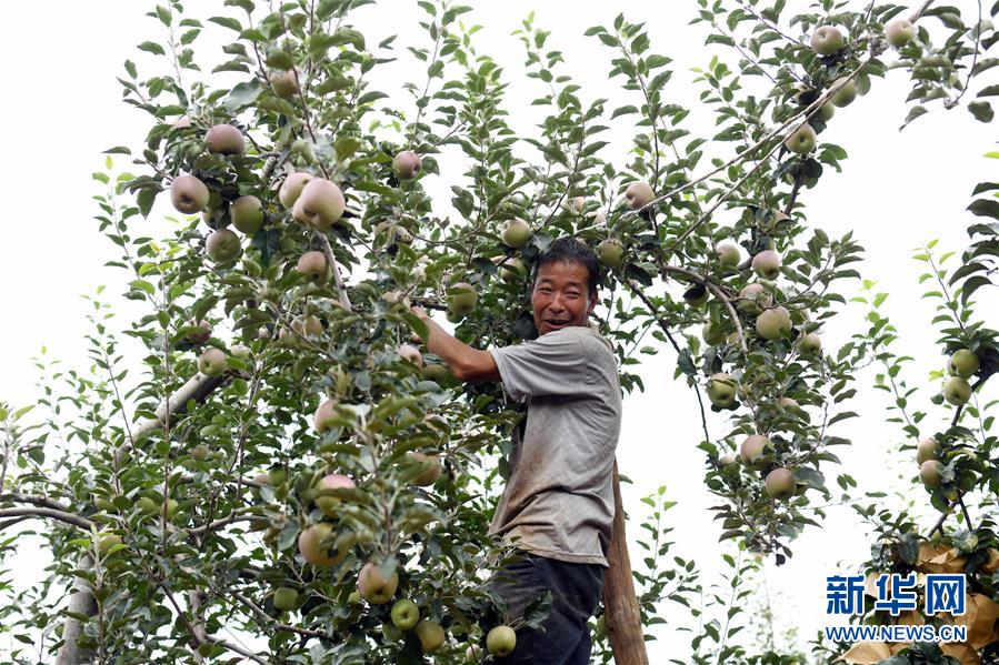 8月8日,昭通超越萬畝蘋果基地工人甄全米在蘋果園工作。近年來,云南省昭通市確立以蘋果產業(yè)為主導的現代農業(yè)產業(yè)發(fā)展戰(zhàn)略。目前,該市蘋果種植面積近80萬畝,覆蓋全市20余個鄉(xiāng)鎮(zhèn),果農種植蘋果年人均收入4000元以上,推動30多萬果農依托蘋果產業(yè)實現脫貧致富,半城蘋果滿城香的“蘋果之城”正在烏蒙山區(qū)奮力崛起。新華社記者江文耀攝。