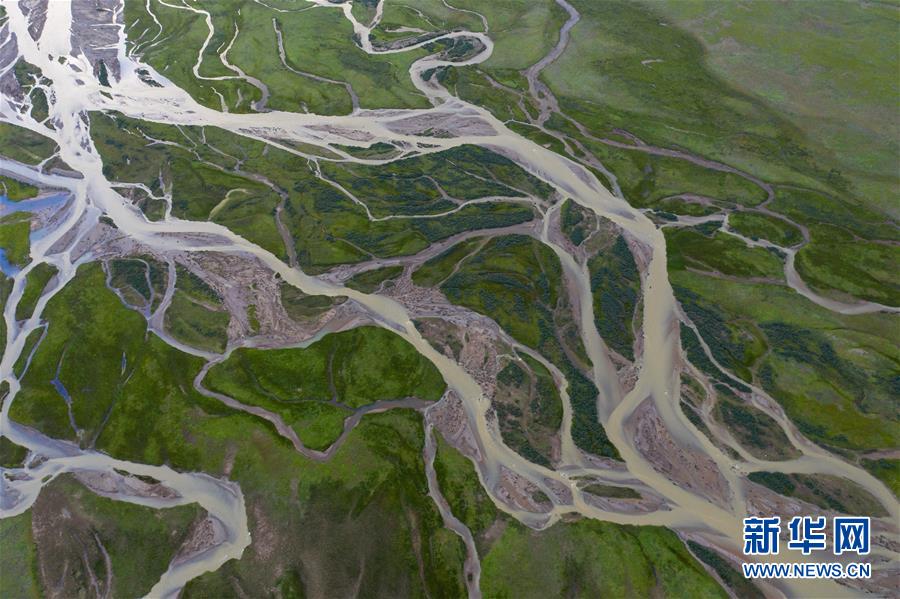 俯瞰泥拉壩濕地里發(fā)辮般的河流,該濕地泥炭富集、水系發(fā)達(dá)(8月9日攝,無(wú)人機(jī)照片)。新華社記者江宏景攝。