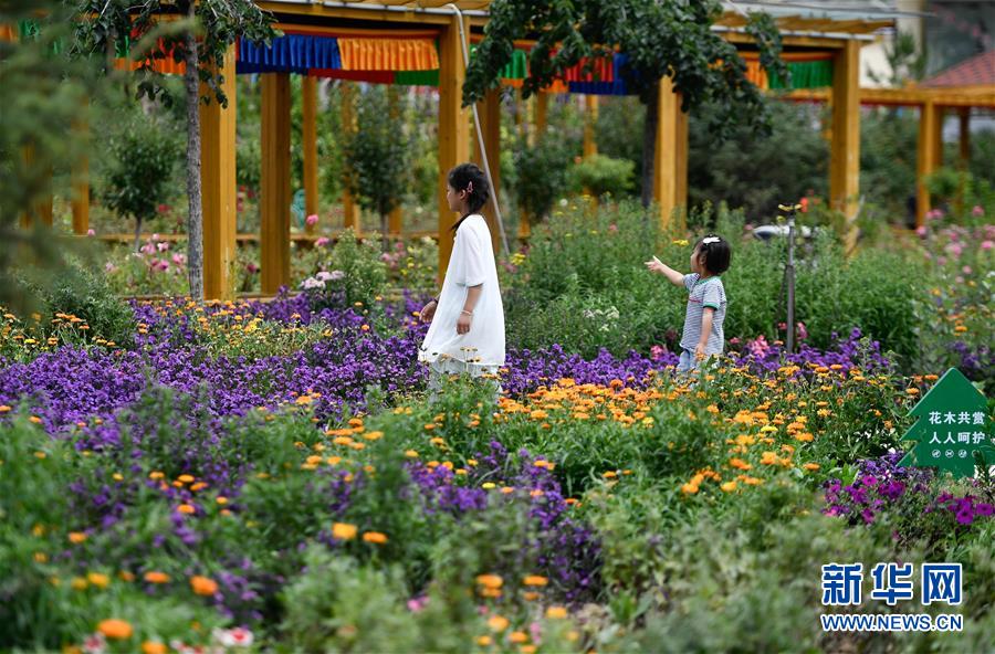 8月11日,小朋友在尖扎縣昂拉鄉(xiāng)德吉村花海景區(qū)內游玩。新華社記者張龍攝