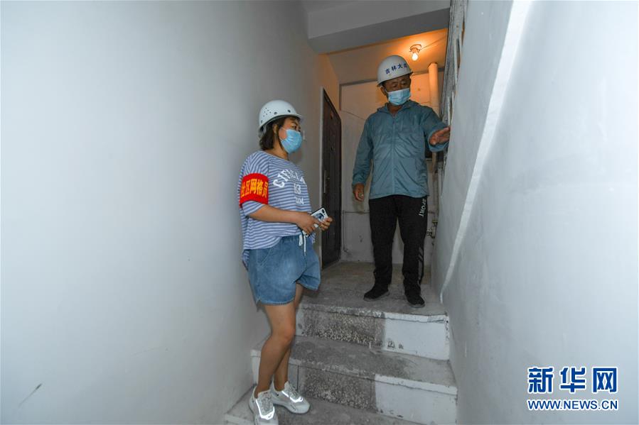 8月11日,在鎮(zhèn)賚縣慶生社區(qū)一老舊小區(qū)內(nèi),工程監(jiān)理和社區(qū)網(wǎng)格員檢查改造后的樓內(nèi)設(shè)施。2019年底開始,吉林省白城市鎮(zhèn)賚縣對超過20年房齡的老舊小區(qū)進(jìn)行全面改造升級,優(yōu)先完成樓體內(nèi)外墻面、樓頂防水、道路硬化工程,并協(xié)調(diào)各職能部門對地下管網(wǎng)、綠化美化等基礎(chǔ)設(shè)施問題進(jìn)行統(tǒng)籌施工,減少后期二次施工造成的環(huán)境破壞和資源浪費(fèi)。一期工程預(yù)計(jì)于今年10月完工,施工完成后,政府相關(guān)部門將為這些小區(qū)統(tǒng)一配備物業(yè)公司,解決后期設(shè)施維護(hù)問題。新華社記者張楠攝