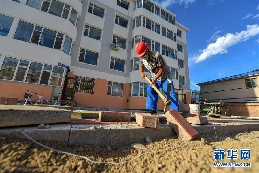 8月11日,工人在鎮(zhèn)賚縣慶生社區(qū)一老舊小區(qū)內(nèi)鋪設(shè)路面方磚。2019年底開始,吉林省白城市鎮(zhèn)賚縣對(duì)超過(guò)20年房齡的老舊小區(qū)進(jìn)行全面改造升級(jí),優(yōu)先完成樓體內(nèi)外墻面、樓頂防水、道路硬化工程,并協(xié)調(diào)各職能部門對(duì)地下管網(wǎng)、綠化美化等基礎(chǔ)設(shè)施問(wèn)題進(jìn)行統(tǒng)籌施工,減少后期二次施工造成的環(huán)境破壞和資源浪費(fèi)。一期工程預(yù)計(jì)于今年10月完工,施工完成后,政府相關(guān)部門將為這些小區(qū)統(tǒng)一配備物業(yè)公司,解決后期設(shè)施維護(hù)問(wèn)題。新華社記者張楠攝