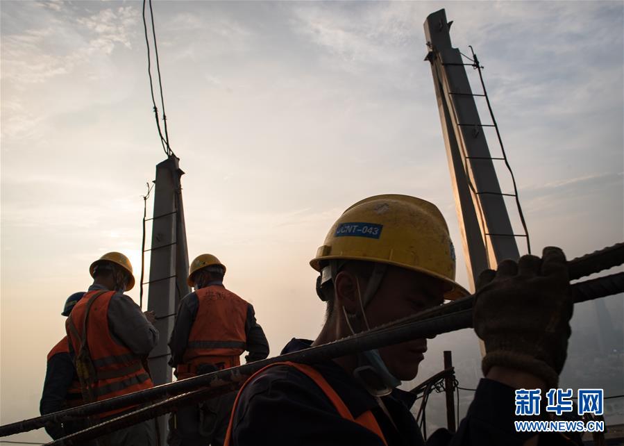 8月11日,工人在武漢綠地中心項(xiàng)目建設(shè)現(xiàn)場(chǎng)近500米的高空施工。新華社記者肖藝九攝