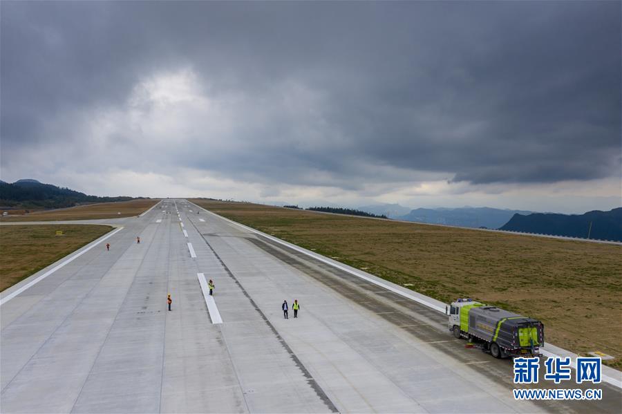 8月12日,校飛正式開始前一天,工作人員對仙女山機(jī)場跑道路面進(jìn)行清潔(無人機(jī)照片)。8月13日,位于重慶武隆區(qū)的仙女山機(jī)場飛行校驗工作正式開始。據(jù)介紹,重慶仙女山機(jī)場校飛時間大約需3至5天。重慶仙女山機(jī)場于2018年4月全面開工,機(jī)場跑道長2800米、寬45米,航站樓總面積6000平方米,投用后可滿足每年60萬人次的旅客吞吐量。新華社記者劉潺攝