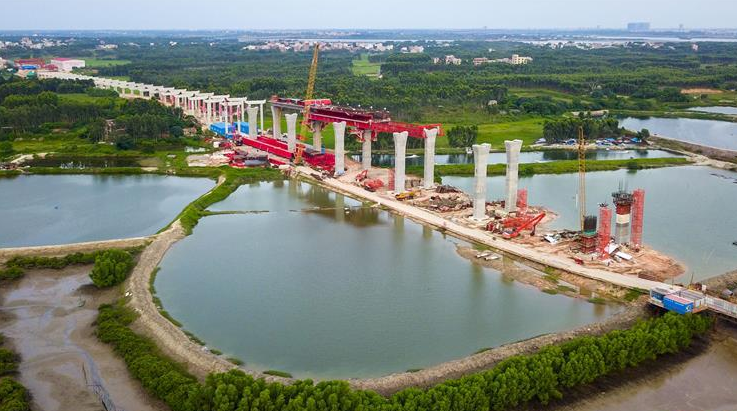 廣東:湛江調(diào)順跨海大橋步入主塔施工