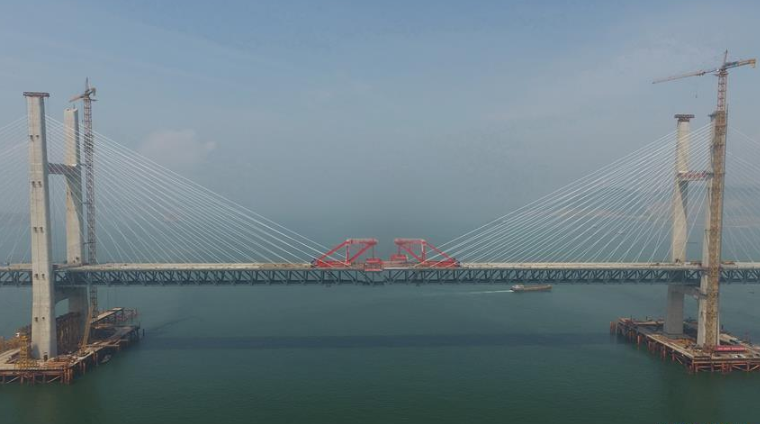 平潭海峽公鐵兩用大橋元洪航道橋主橋成功合龍