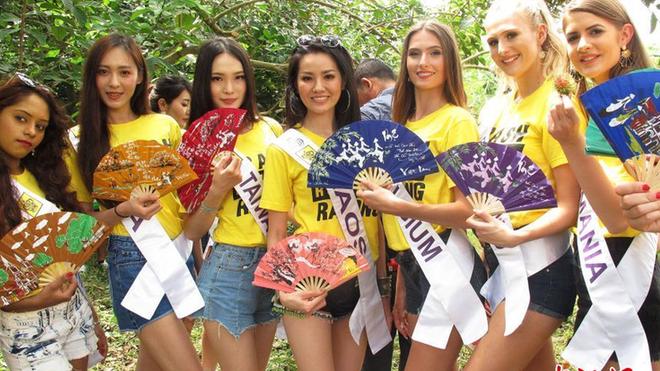 5月12日,正在泰國參加2018年國際旅游小姐冠軍總決賽的佳麗,來到泰國風景區(qū)拍照。