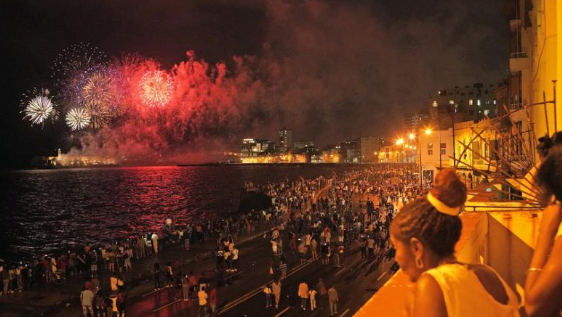 當地時間2019年11月15日,古巴哈瓦那,當地燃放煙花慶祝哈瓦那建城500周年。2019年11月16日是古巴首都哈瓦那建城500周年紀念日。