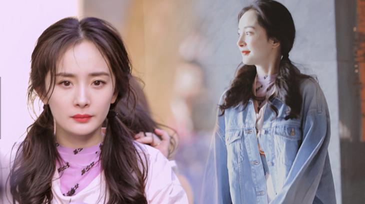 楊冪穿粉衣扎雙馬尾甜美可愛 身材纖細(xì)元?dú)鉂M滿