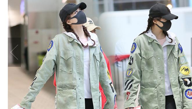 秦嵐潮味棉服亮相機(jī)場(chǎng) 口罩遮面露甜笑