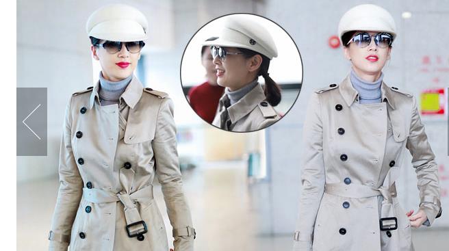 11月29日,上海,秦嵐現(xiàn)身機(jī)場。她戴白色鴨舌帽,穿白色星星圖案外套配微喇牛仔褲,架黑超涂紅唇笑靨如花。