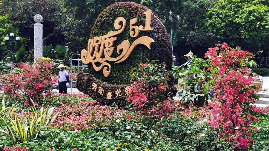 “五一”假期臨近,廣州市林業(yè)園林部門在廣州市中心人民廣場設(shè)置主題花壇,用鮮花綠植裝點(diǎn)節(jié)日街頭。