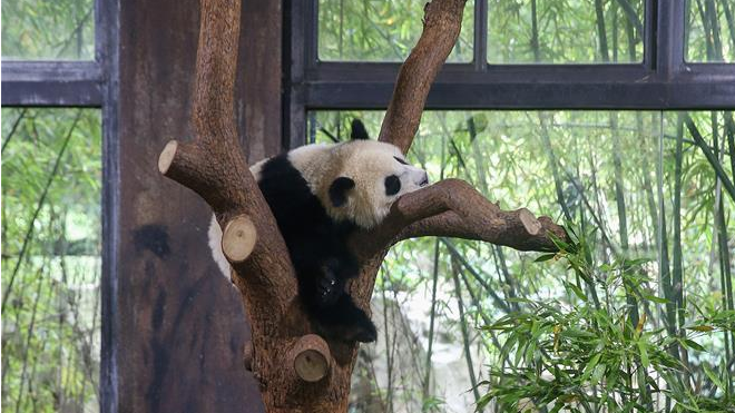 當(dāng)日,來自四川的大熊貓兄弟“和風(fēng)”與“星光”飛抵上海,正式開始了在上海動(dòng)物園為期三年的生活。