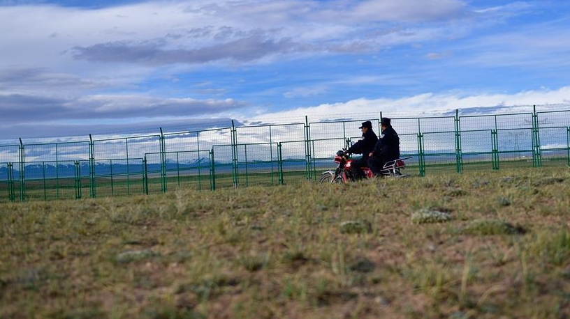 在可可西里索南達(dá)杰保護(hù)站管護(hù)區(qū)域,龍周才加與隊(duì)友們乘車巡視。