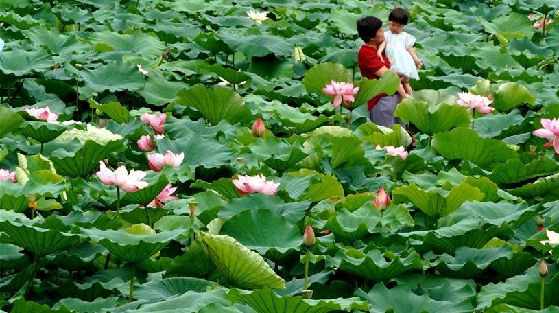 近日,河南鄭州紫荊山公園內(nèi)的荷花陸續(xù)綻放,吸引大批市民和游客前來(lái)觀賞。