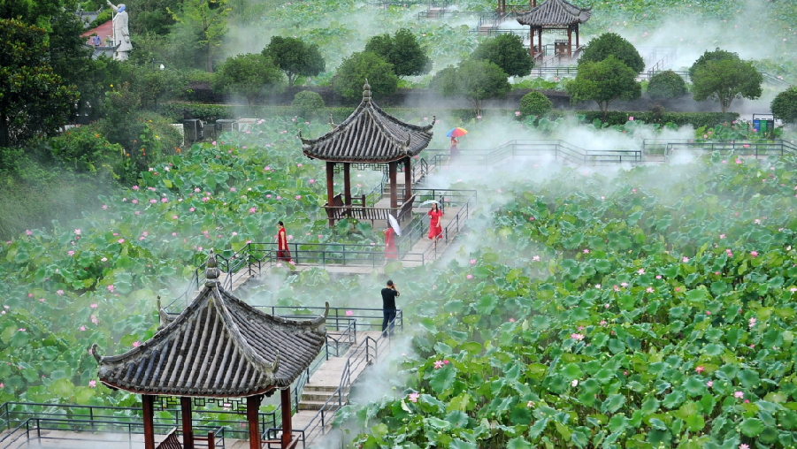 清晨6點(diǎn),永康市舟山鎮(zhèn)端巖村端頭自然村,荷塘的薄霧慢慢升起,攝影師按下快門記錄鄉(xiāng)村之美。