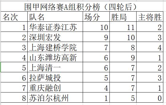 附1:2020年“華為手機(jī)杯”中國圍棋男子甲級隊聯(lián)賽網(wǎng)絡(luò)熱身賽AB兩組積分排名表