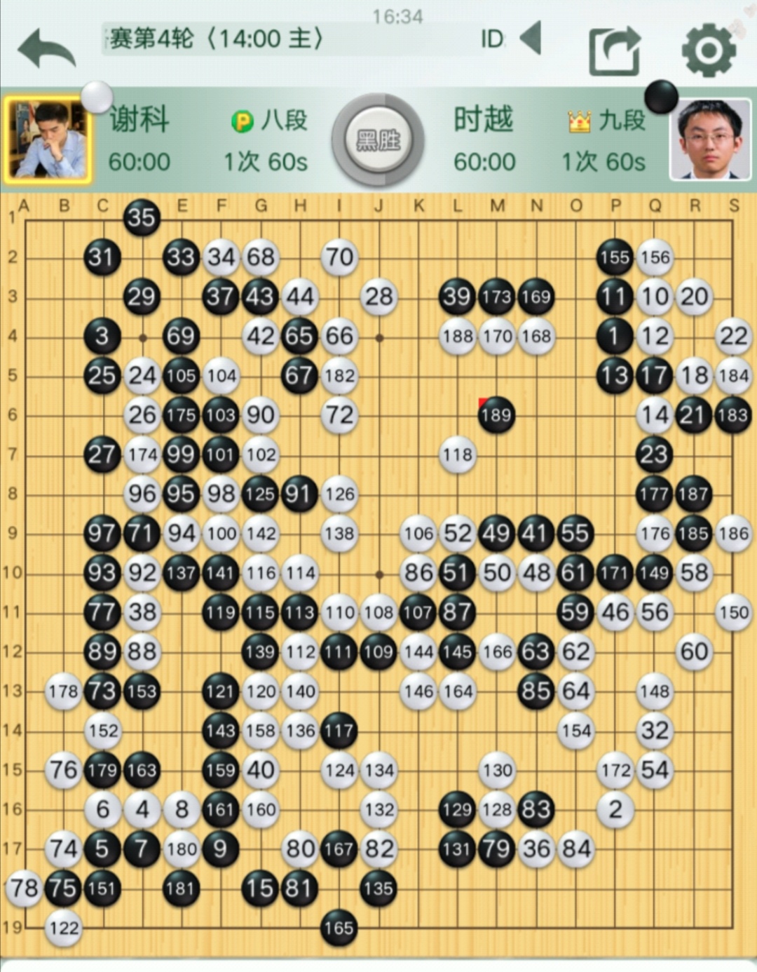 第二臺主將之戰(zhàn)謝科八段VS時越九段(對陣棋譜),時越最后勝出。時越首輪逆襲勝排名第二的楊鼎新九段,本輪再度逆襲得手,倒春寒味道十足。白棋耗費(fèi)心力經(jīng)營中腹,但因黑棋在邊空所得更大,白棋大模樣作戰(zhàn)失敗。之后黑棋守牢己方大空,相機(jī)壓縮白棋中腹模樣,白棋實空“干不夠”,直至認(rèn)輸。