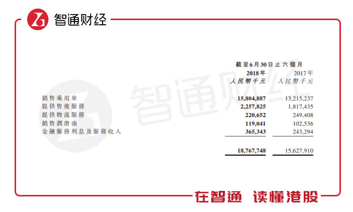 上半年,該公司收入增長20.1%,其中乘用車銷售收入增長19.6%,售后服務收入增長為24.3%,供應鏈業(yè)務收入下滑3.4%,金融服務收入增長50.2%,以上四類收入貢獻分別為84.2%,12%、1.8%和2%,收入增長貢獻分別為82.5%、14%、-0.4%和3.9%。
