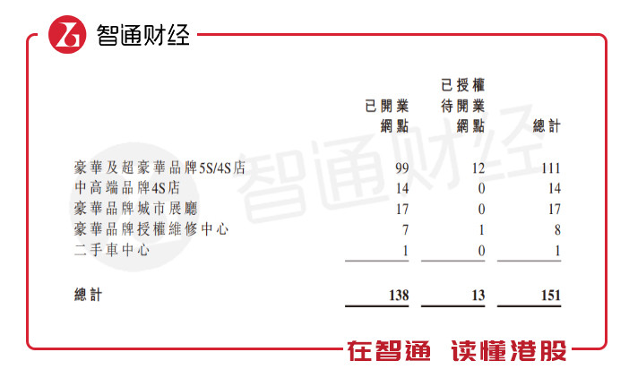 4S店仍是正通投資的重點,智通財經APP了解到,上半年該公司建成開業(yè)4家豪華汽車運營網點,其中奔馳一家,寶馬一家,紅旗兩家,截至到6月60日,共有138家4S店,已授權待開業(yè)的有13家,合計151家。