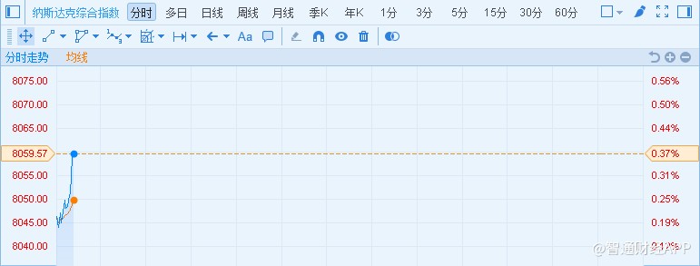 智通財(cái)經(jīng)APP獲悉,周三,美股基本平開,其中納斯達(dá)克指數(shù)盤初高走,升穿8046.315點(diǎn),創(chuàng)紀(jì)錄新高。截至發(fā)稿,納指報(bào)8059.57,漲30點(diǎn)或0.37%。