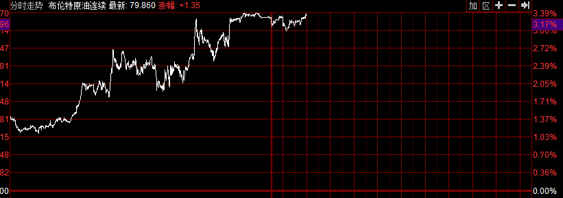 截至發(fā)稿,布倫特原油升至80.19美元/桶,升2.49%;盤中一度升至80.51美元/桶,創(chuàng)2014年11月以來的新高。