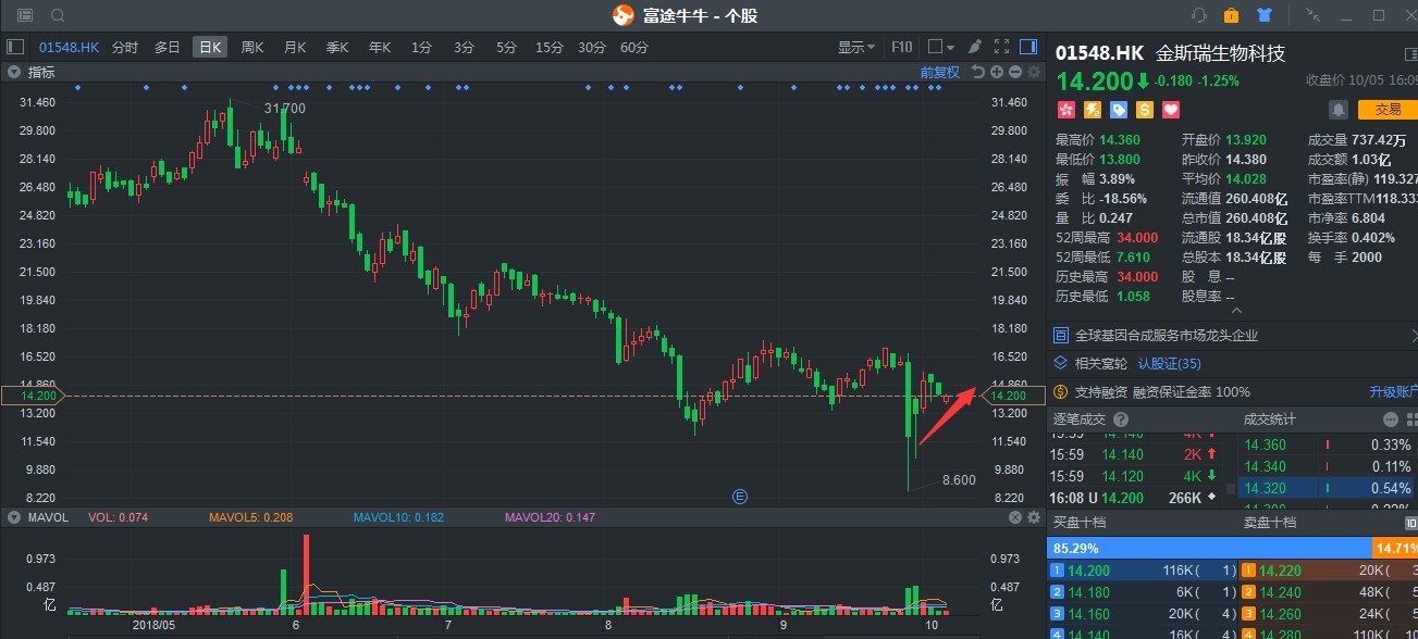 談及去年的港股牛市,金斯瑞應(yīng)該算得上是生物醫(yī)藥板塊中,非常引人注目的一只股票。就算2018年隨大市回調(diào),但表現(xiàn)仍可圈可點:受益港股通北水資金利好,成交量異?;钴S,成交量平均每日達到2000萬股,總額平均4.08億港元。細數(shù)港股通標(biāo)的,有如此活躍成交量的股票確實不多。