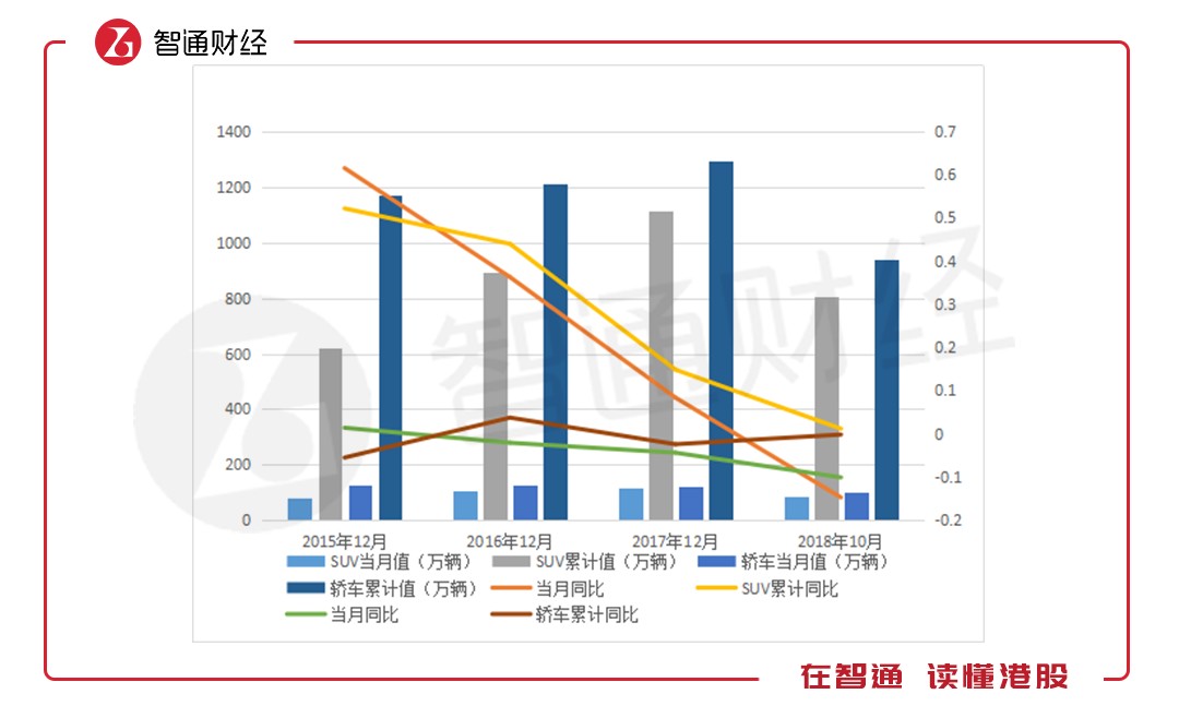 轎車和SUV車型在2018年首10月銷量合計約1749萬輛,分別占據(jù)了汽車以及乘用車76.5%和90.6%的份額,這兩類車型的消費(fèi)表現(xiàn)代表了整個汽車以及乘用車行業(yè)的景氣情況。