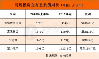 富力地產(chǎn)財報數(shù)據(jù)顯示,2015年至2018年三季度,富力地產(chǎn)的負債總額分別達1345億元、1795億元、2332億元及2863億元。其中,有息負債已經(jīng)高達1600逾億,對比同規(guī)模的房企,這一數(shù)據(jù)居于同水平房企高位。