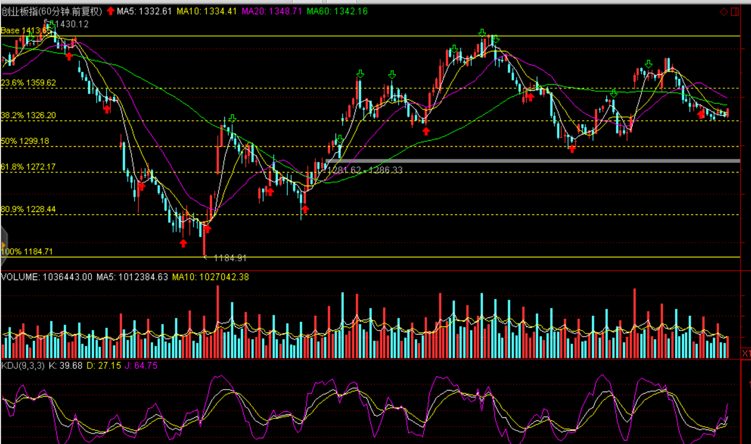 技術(shù)面:短期企穩(wěn)回升,弱勢反彈,60分鐘黃金分割線滬綜指2604點、2641點、創(chuàng)業(yè)板1360點一線存在壓力。