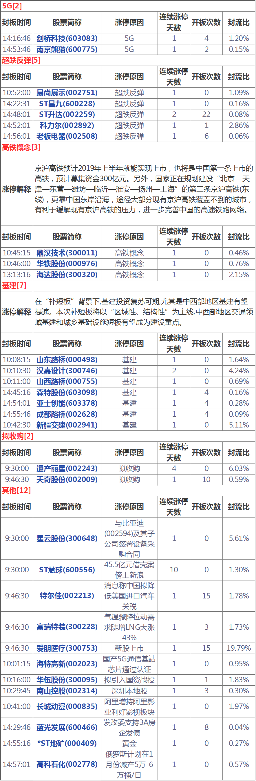 漲停分析:滬指放量漲1.23%基建板塊多股漲停