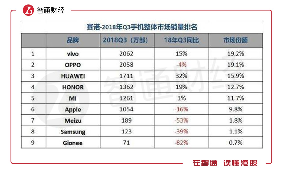 華為、小米、OPPO及Vivo四大品牌在全球逐漸吞沒其他知名品牌的市場份額,而在中國市場基本戰(zhàn)領了所有的市場份額,根據數據統(tǒng)計公司Counterpoint數據,2018年Q3,上述四大品牌市場占有率近80%。包括蘋果、摩托羅拉及三星等國外知名品牌,以及魅族、朵唯和中興等其他眾多國內品牌,爭奪剩下20%的市場份額,競爭以及生存環(huán)境十分殘酷。