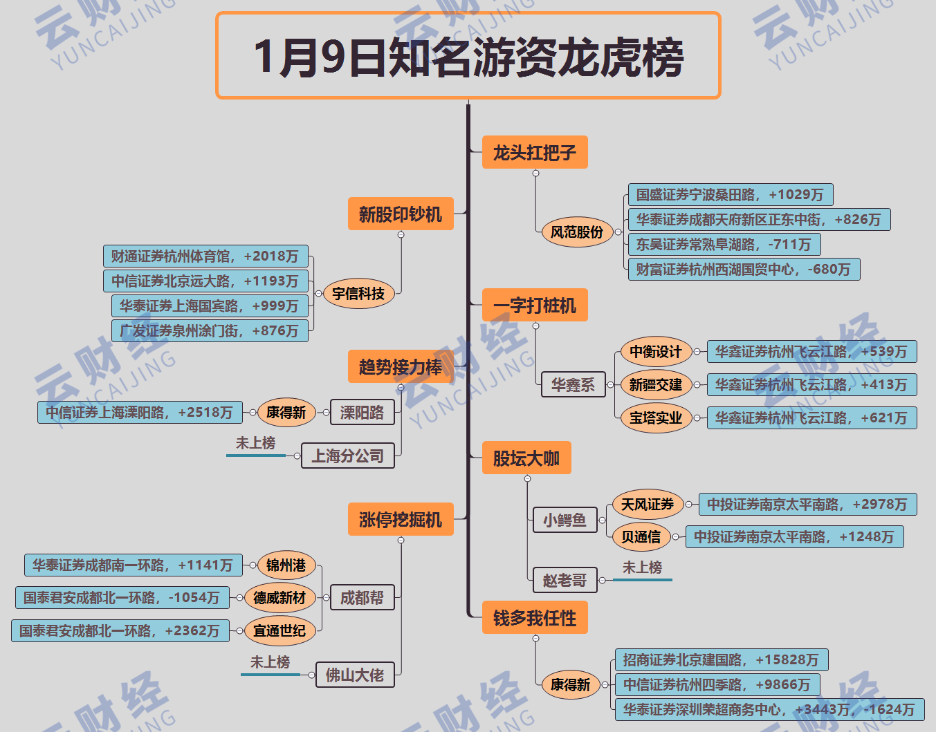 其他游資方面,小鱷魚買入天風證券(601162)2978萬,買入貝通信(603220)1248萬,成都幫獲利賣出德威新材(300325)1054萬,買入錦州港(600190)1141萬。