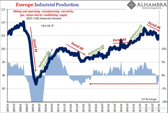 歐盟統(tǒng)計局對整個歐洲工業(yè)生產(chǎn)的估計,包括從德國收集的工業(yè)生產(chǎn)和重新利用的工業(yè)生產(chǎn)數(shù)據(jù)顯示,歐洲的產(chǎn)量在過去三個月中(11月、12月、1月)同比增速均出現(xiàn)下降,觸及2012 -13年經(jīng)濟衰退以來低點。