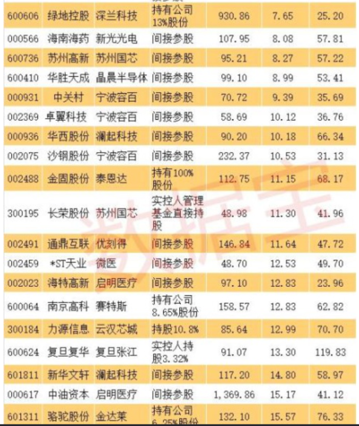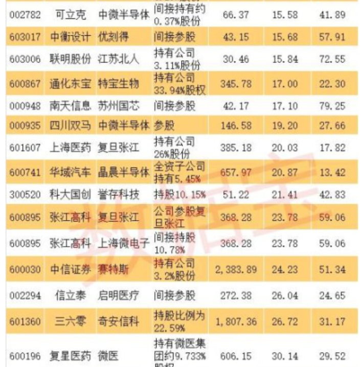 科創(chuàng)板影子股:首批創(chuàng)業(yè)板潛在公司背后有超過50只影子股,而這些影子股大多是間接持股。從持股比例來看,最大的是金固股份,持有泰恩達(dá)100%股權(quán)。其他影子股持股比例較大的還有,通化東寶持有33.94%特寶生物、上海醫(yī)藥持有26%復(fù)旦張江、三六零持有22.59%奇安信科、張江高科間接持有10.78%上海微電子、綠地控股持有13%深蘭科技、力源信息持有10.8%云漢芯城、科大國創(chuàng)持有10.15%譽(yù)存科技、南京高科持有8.65%賽特斯、駱駝股份持有6.25%金達(dá)萊等。
