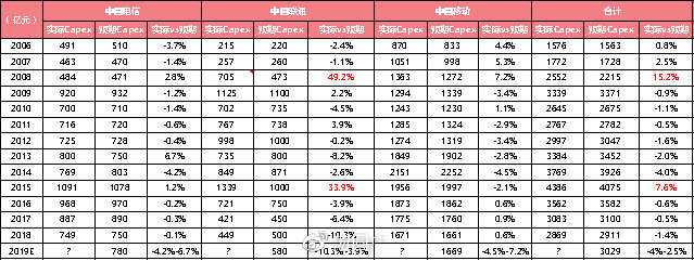 但在調(diào)整之前,我們需要確定當(dāng)前三大運(yùn)營(yíng)商給出的2019年度資本開支計(jì)劃具有多大參考性?最終5G投資是否會(huì)超出或不及340億元的預(yù)期?