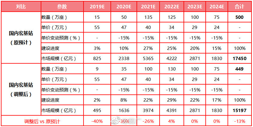 2.下調(diào)2019年5G基站數(shù)預(yù)期40%