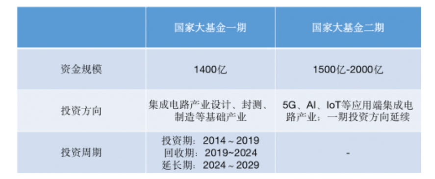 二期更側(cè)重于應(yīng)用端,例如下游5G、AIoT等技術(shù)引領(lǐng)的集成電路應(yīng)用產(chǎn)業(yè);大基金二期將關(guān)注刻蝕機(jī)、薄膜設(shè)備、測(cè)試設(shè)備和清洗設(shè)備等領(lǐng)域企業(yè),另外將開(kāi)展光刻機(jī)、化學(xué)機(jī)械研磨設(shè)備等核心設(shè)備以及關(guān)鍵零部件的投資布局。
