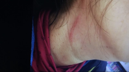 事后,羅小姐的母親張女士很快打電話報(bào)了警。張女士今年52歲,女兒提到母親的傷勢(shì)非常心疼,“我母親頭部腫起,脖子上有三處抓痕(有出血),手指也被抓傷,之后幾天右側(cè)腰部和右膝都感覺疼痛?!?/p>