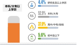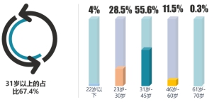 本次調(diào)研中,家政公司消費者中,31歲-45歲是主要消費者,占比55.6%,31歲以上的消費者占比為67.4%。;57.4%的受訪者學歷為本科/大專及以上 。