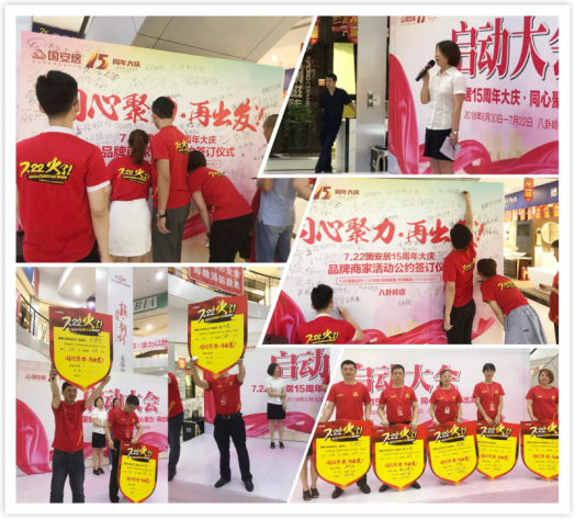 7月3日下午,紅色的T恤覆蓋了國安居各店商場,“7.22國安居15周年大慶”啟動大會在國安居各店正式落下帷幕。為確保全員工作執(zhí)行到位,運行流暢,國安居各店店總及各店策劃負責人,先后做了本次大慶企劃活動及推廣執(zhí)行方案的細致說明,各店參會的商戶老板、銷售精英及國安居員工對此次活動的推廣形式與方向感到更加明確了,對于此次大慶活動的開展更是充滿了期待與信心。