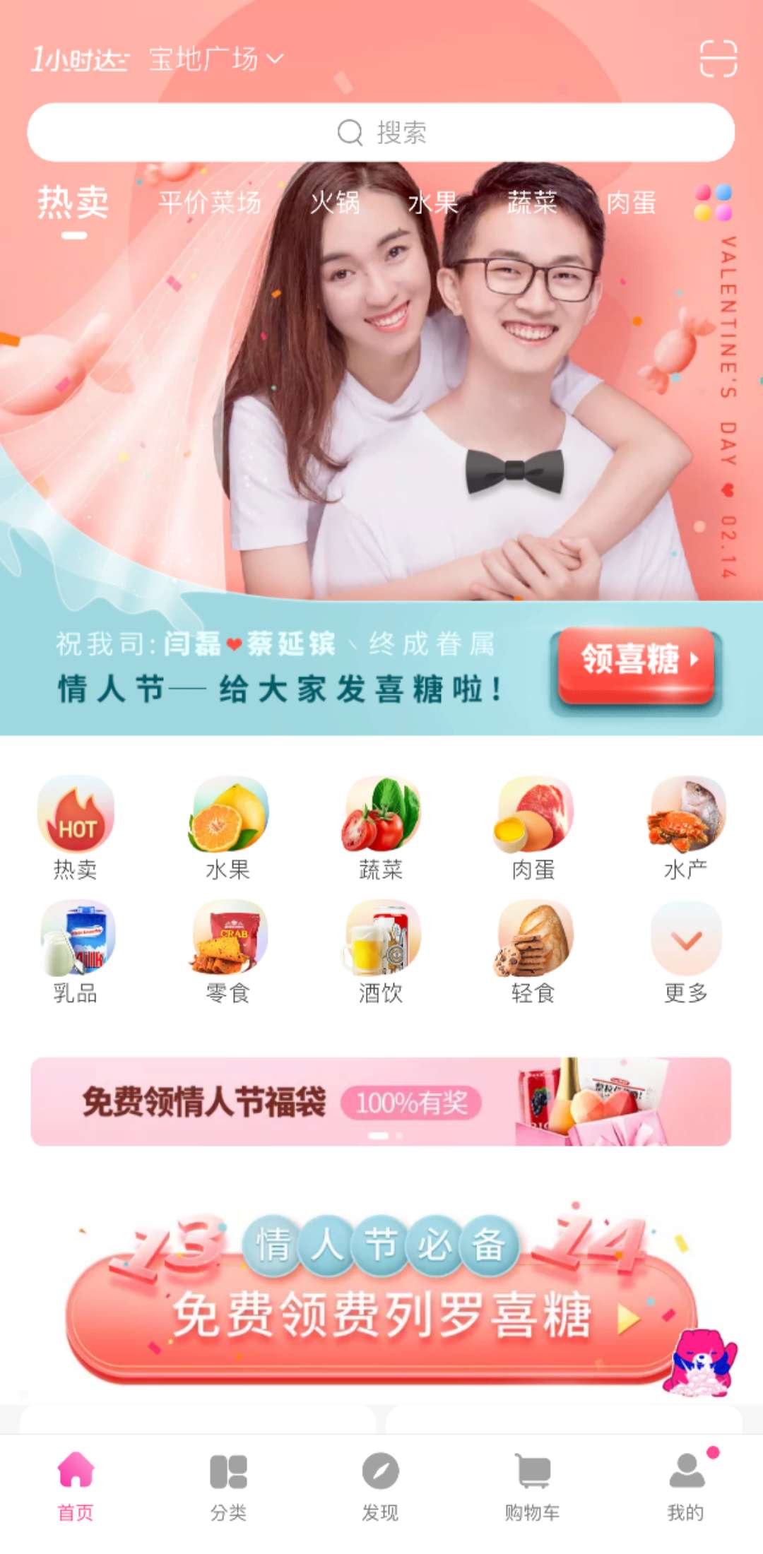 2月13-14日,廣州、深圳地區(qū)每日優(yōu)鮮用戶登錄每日優(yōu)鮮APP首頁,便看到兩位新人的甜蜜的結(jié)婚照,讓大家非常意外。