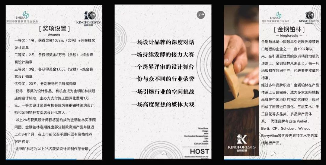 行業(yè)協(xié)會聯(lián)手中國最早引進歐洲原裝進口的地板企業(yè)金鋼鉑林,利用其在寶能第一空間的旗艦店即將啟幕的機會,設置十萬元的現(xiàn)金大獎來舉辦賽事,就是要推動行業(yè)設計力量的縱深發(fā)展。