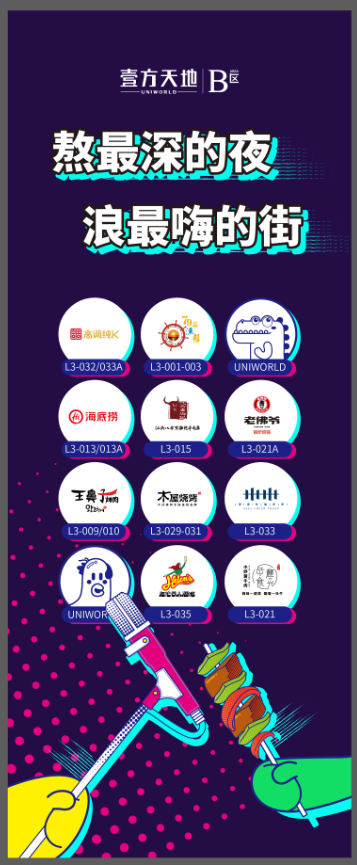 購物中心是城市的精華,也是生活方式的容器。B區(qū)洞察了當代年輕人的這一消費習慣,發(fā)力“夜經濟”,精心打造夜市街區(qū)——嗨FUN宵夜街。