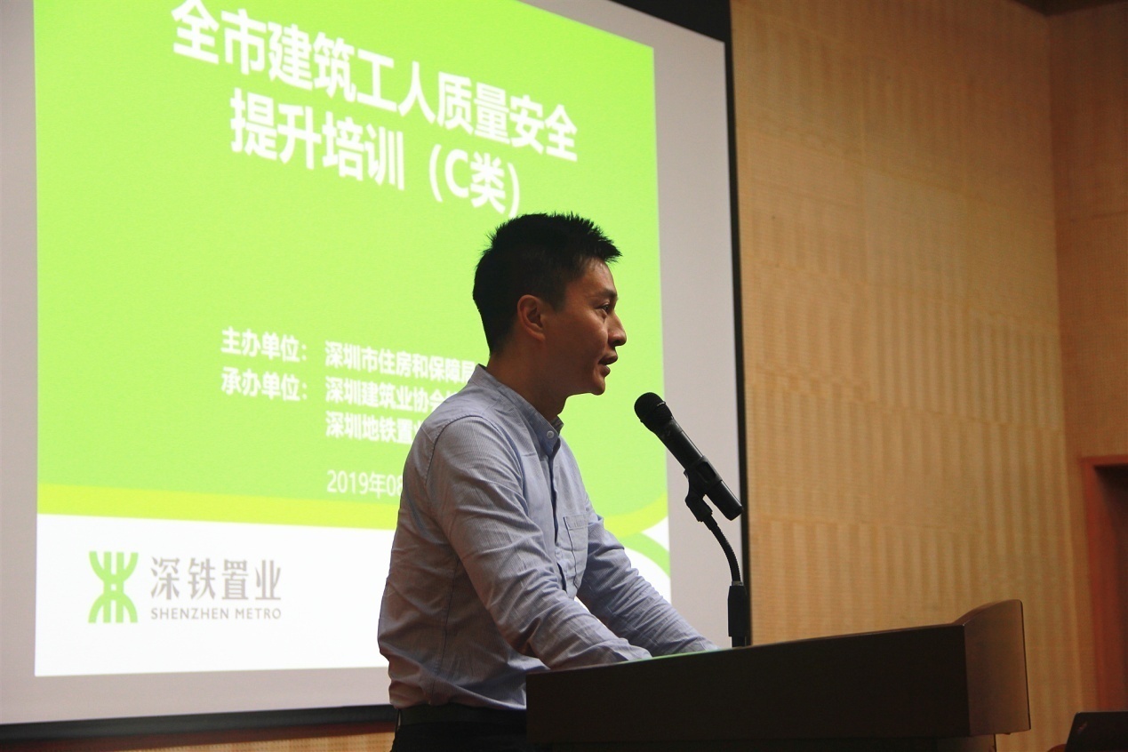 深圳市住房和建設(shè)局建筑市場和招標(biāo)投標(biāo)監(jiān)管處副處長董亮首先對一線工人表示親切的慰問,并對深圳地鐵置業(yè)集團(tuán)積極響應(yīng)政府號召,扎實落實工人安全質(zhì)量培訓(xùn)工作表示肯定。本次培訓(xùn)是市住建局建筑工人質(zhì)量安全培訓(xùn)提升工作方案的重要組成部分,接下來將在全市全面推行A、B、C、D、E五類培訓(xùn)。由政府、企業(yè)、協(xié)會、培訓(xùn)機(jī)構(gòu)四方力量共同攜手推進(jìn)崗前崗后、場內(nèi)場外、線上線下培訓(xùn)教育工作。今后,未經(jīng)過系統(tǒng)教育培訓(xùn)的工人將禁止進(jìn)入深圳市建筑市場。