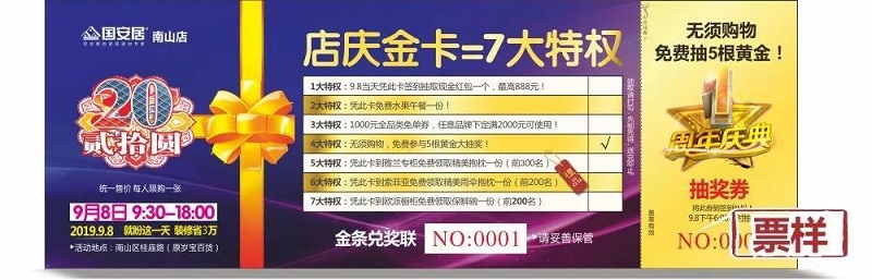 9月8日前 ,提前在國安居店面及微信20元搶購 《店慶金卡》 ,活動當(dāng)天簽到即可尊享7重超值豪禮!