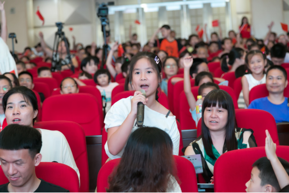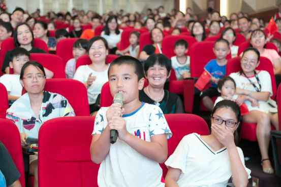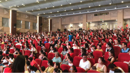 接下來,為進(jìn)一步增強(qiáng)青少年兒童的愛國意識(shí),主辦方將戲劇教育與愛國教育有機(jī)融合,于文明知識(shí)問答后,邀請(qǐng)近千名觀眾一起舞動(dòng)小紅旗,齊聲唱響《我和我的祖國》,點(diǎn)燃了在場每一位觀眾的愛國熱情,觀眾們跟隨著旋律,共同歌唱祖國,深情祝福祖國明天更加輝煌。