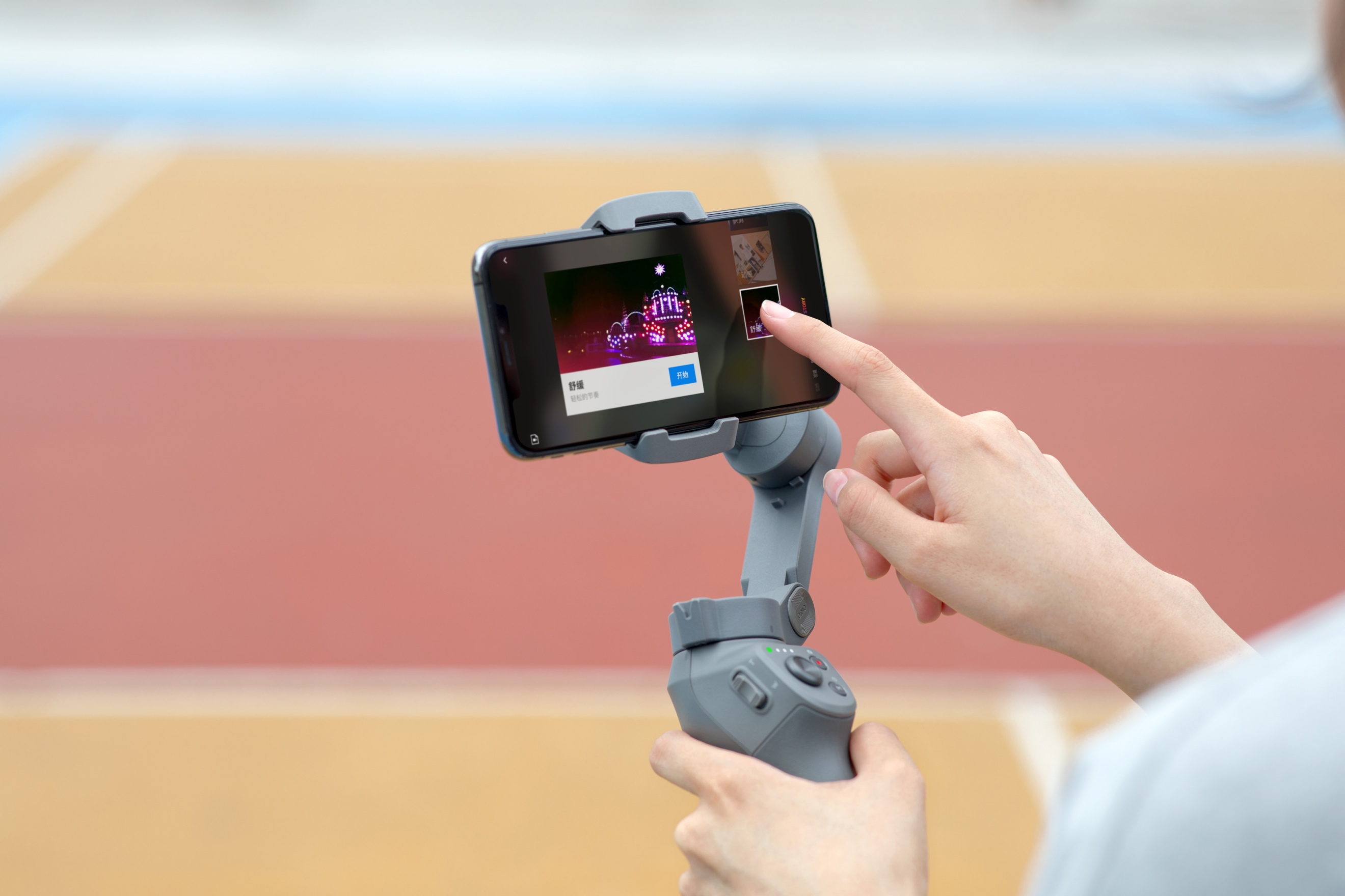 靈眸手機(jī)云臺(tái)3創(chuàng)造性地將常用功能集合成“一鍵操作”。強(qiáng)大的 M按鍵可切換拍照錄像、橫豎拍攝等多種模式,模式切換按鍵可以觸發(fā)智能跟隨3.0以及切換前后攝像頭、云臺(tái)模式等多種功能。結(jié)合預(yù)設(shè)快捷菜單欄,配合搖桿, M按鍵還可快速選擇多項(xiàng)拍攝功能。而利用機(jī)身側(cè)面的變焦滑桿不僅可以控制鏡頭變焦,還可通過 App控制變焦速度,營造趣味短片。相較于云臺(tái)工作狀態(tài)下在手機(jī)界面操作的不便,靈眸手機(jī)云臺(tái)3獨(dú)創(chuàng)的單手操控模式把手機(jī)攝像中需要的大部分操作匯集于兩根手指即能完成。這給手機(jī)視頻拍攝帶來了全新的交互體驗(yàn)。