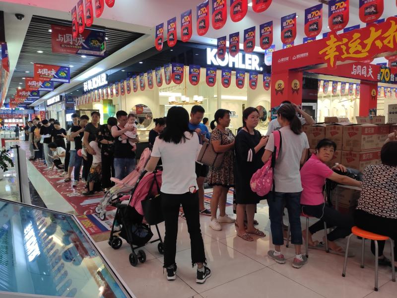 10月7日,長(zhǎng)假最后一天,也是抽獎(jiǎng)活動(dòng)即將揭曉的一天。記者在市場(chǎng)上轉(zhuǎn)了一圈發(fā)現(xiàn),各種讓人眼花繚亂的優(yōu)惠活動(dòng)營(yíng)造出紅火、熱鬧的促銷場(chǎng)面,面對(duì)商家的賣力吆喝,不少消費(fèi)者選擇在長(zhǎng)假最后一天下單。在恒潔衛(wèi)浴店內(nèi),打出了國(guó)慶最大優(yōu)惠促銷活動(dòng)的口號(hào),店內(nèi)人頭攢動(dòng),營(yíng)業(yè)員忙碌到嗓子都變得沙啞?!皣?guó)慶長(zhǎng)假至今,我們的銷售額是平時(shí)的5倍,即使累點(diǎn)也開(kāi)心。”營(yíng)業(yè)員高興地說(shuō)?!皬?月21日促銷活動(dòng)開(kāi)始,我們衣柜的訂單就大幅上漲,已經(jīng)接到70多套的訂單?!彼鞣苼喴鹿竦牡觊L(zhǎng)介紹,國(guó)慶長(zhǎng)假促銷活動(dòng)的效果比“五一”假期時(shí)還要理想。